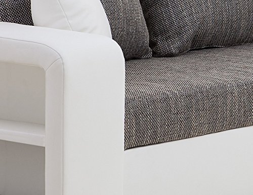 "über 120 Rezensionen auf Amazon können sich nicht irren!!! Dieses Ecksofa mit Schlaffunktion und Bettkasten hat ein Regal in der Armlehne, sieht gut aus und ist sein Geld wert. TOP!"